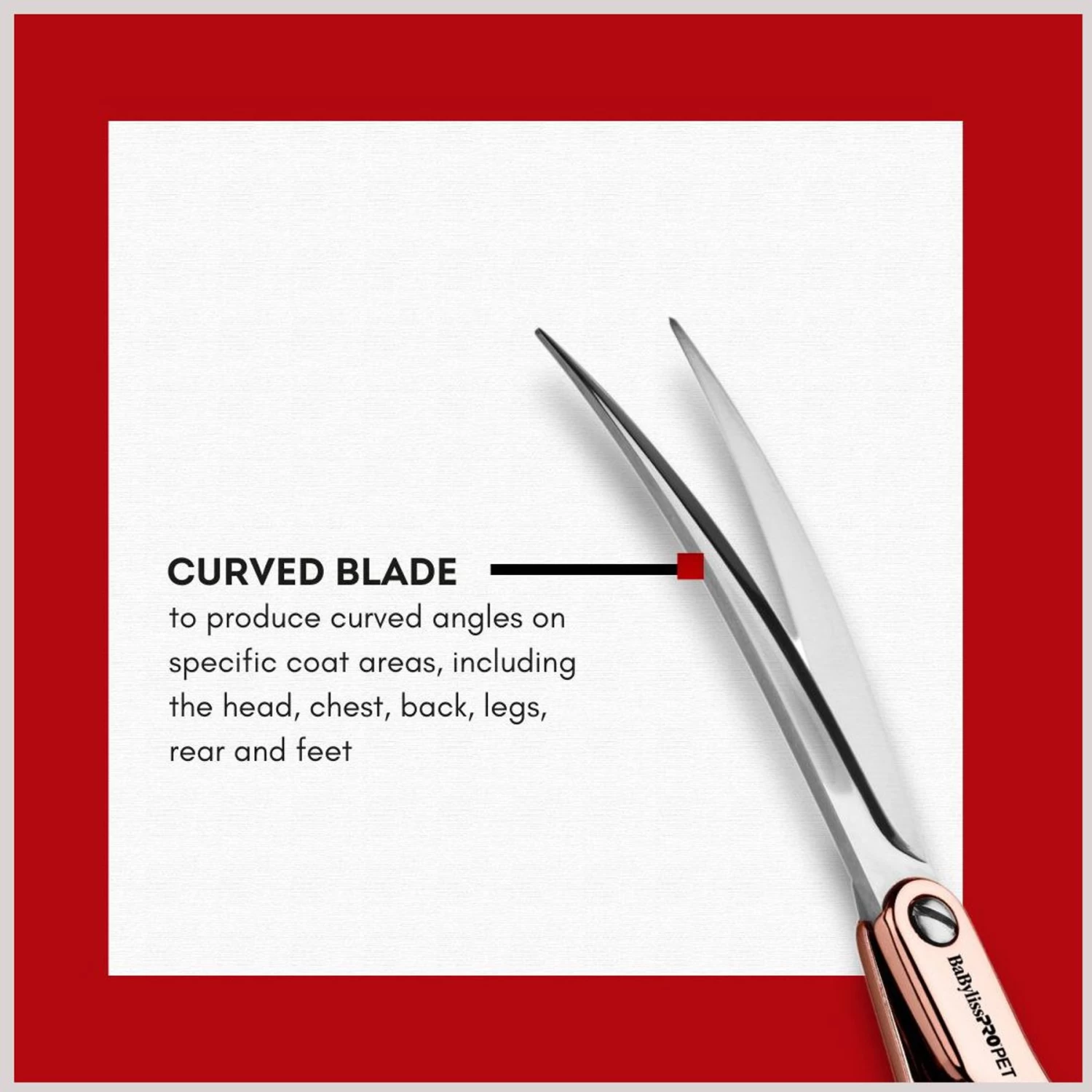 - Professionally-designed curved shear creates natural, curved angles on specific areas of the coat, including the head, chest, backs, leg, rear and feet.