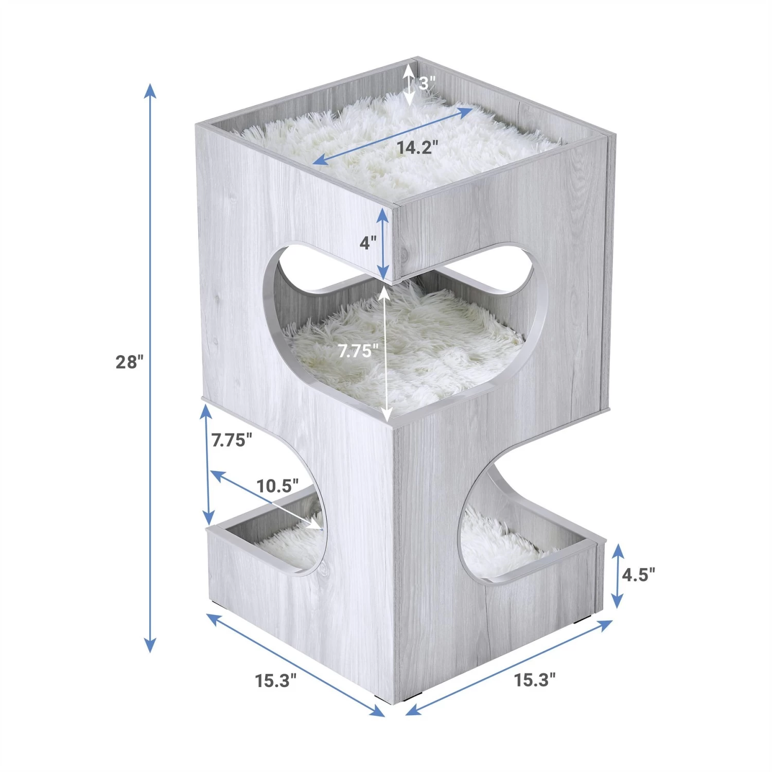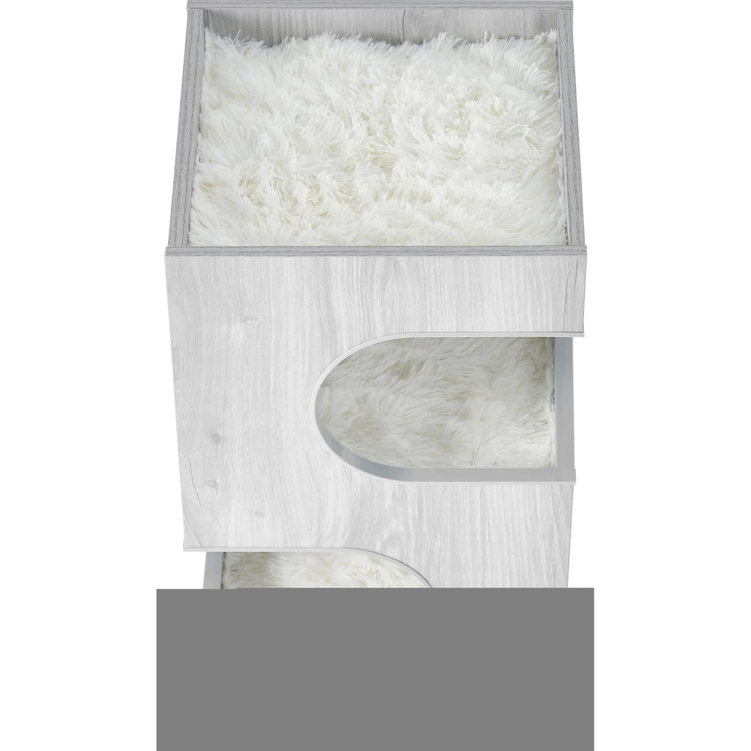 - Extra-large cutout windows in the private condo provide your kitty with a place to retreat to while still having a view of your home. Includes washable, removable cushion with soft, eyelash faux fur fabric.