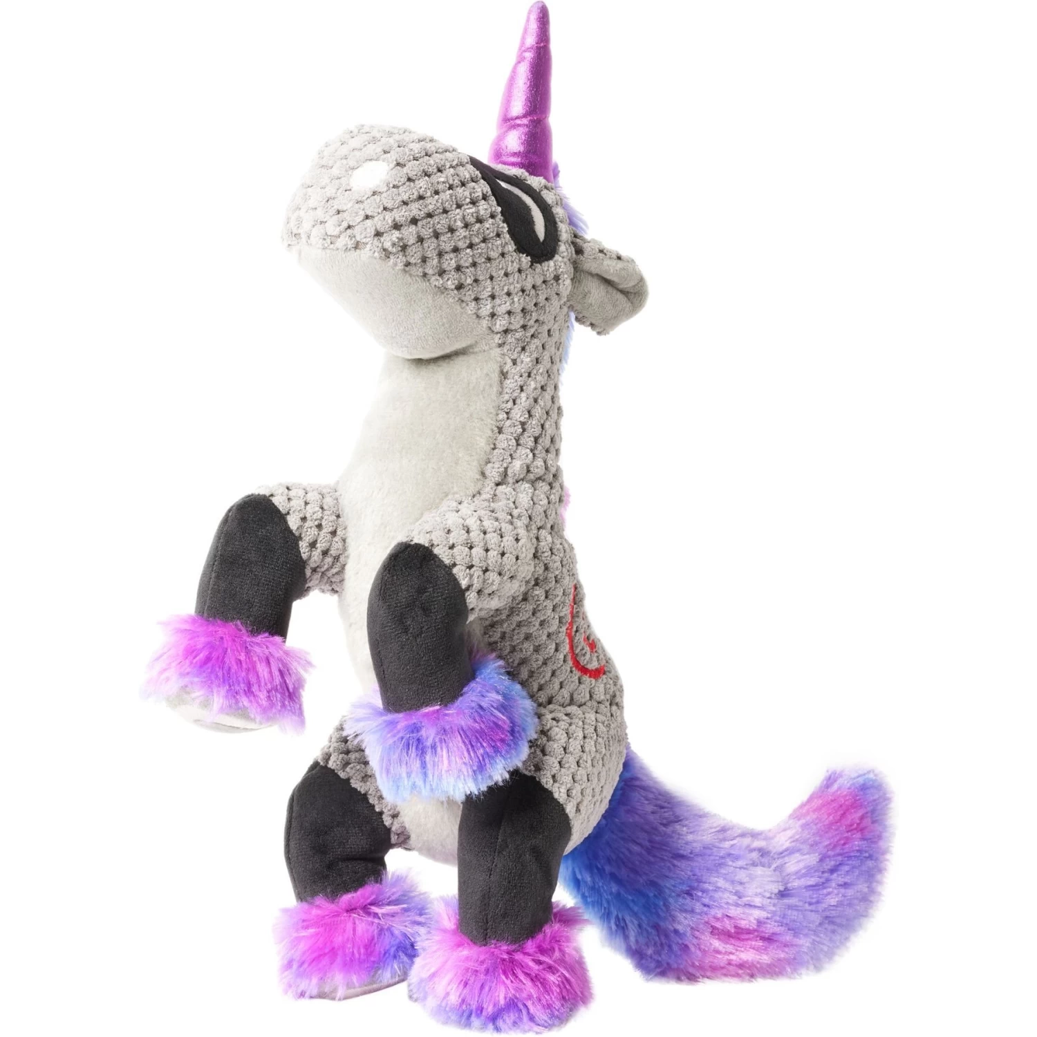 - This horse is capable of standing alone to show off its shiny unicorn horn, fuzzy feet, and mane while also making it easier for your pup to snatch up.