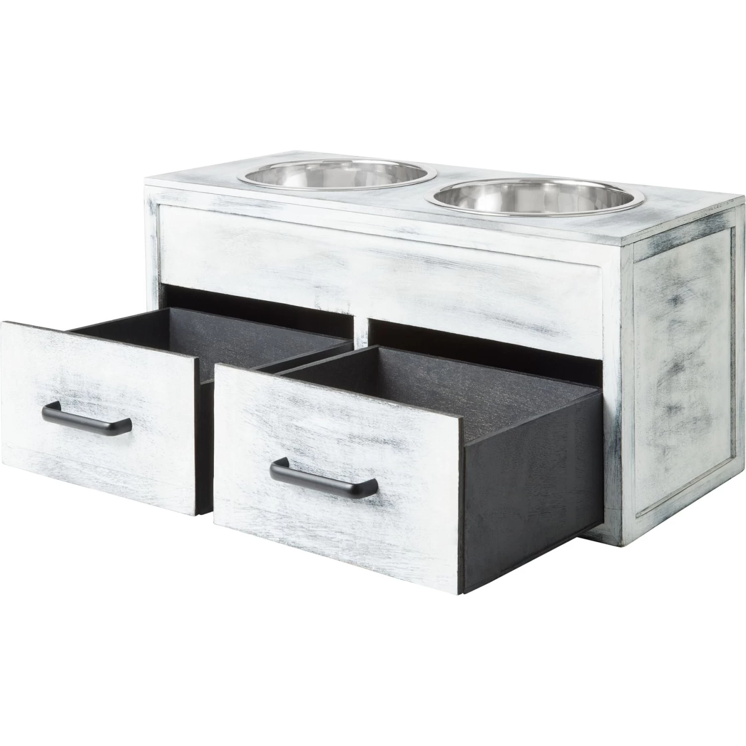 - This dining table comes with two built-in drawers for storing daily essentials like treats, leashes or even toys.