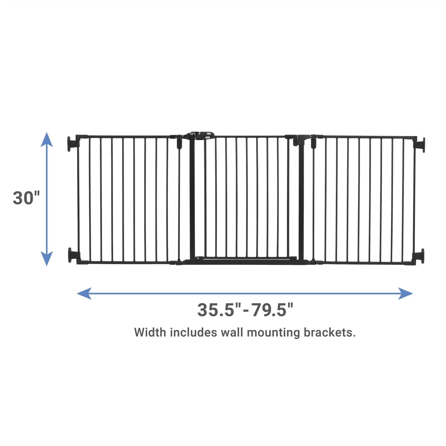 - Based on your space and needs, multiple three-panel gates can be combined to bridge bigger gaps and enclose larger spaces. A single panel can fit a 35.5-inch-wide space, a two panel can fit a 57.5-inch space and three panels can fit up to 79.5 inches.